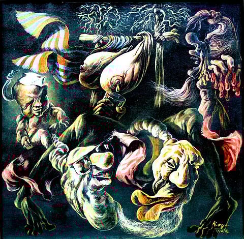 At the Madras Government College of Fine Arts way back in 1965, N.K.P. Muthukoya began experimenting with a genre that had no precedence in India’s modern art. Morbidity defined the mood of his strokes on the canvas, the theme centred round death and the images looked largely weird by conventional standards. The student’s style was something that didn’t please many, including the institution’s head K.C.S. Paniker, an iconic figure in metaphysical and abstract painting.