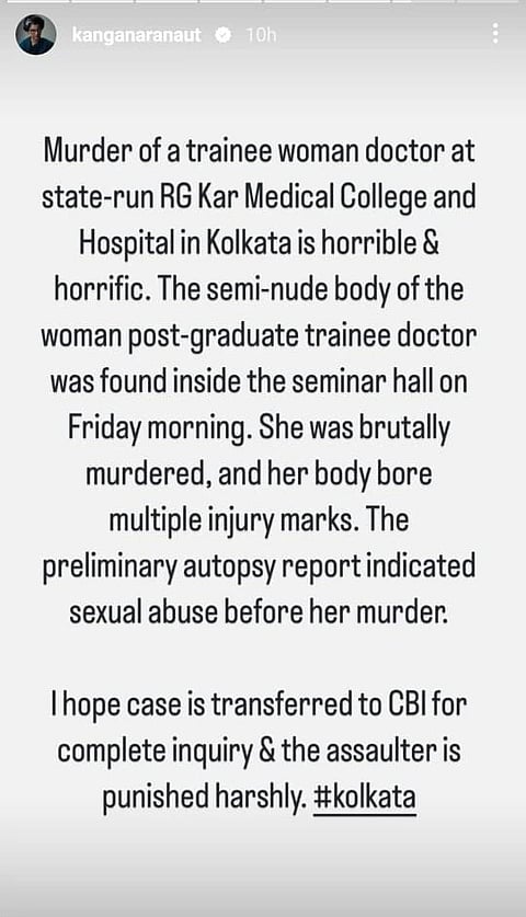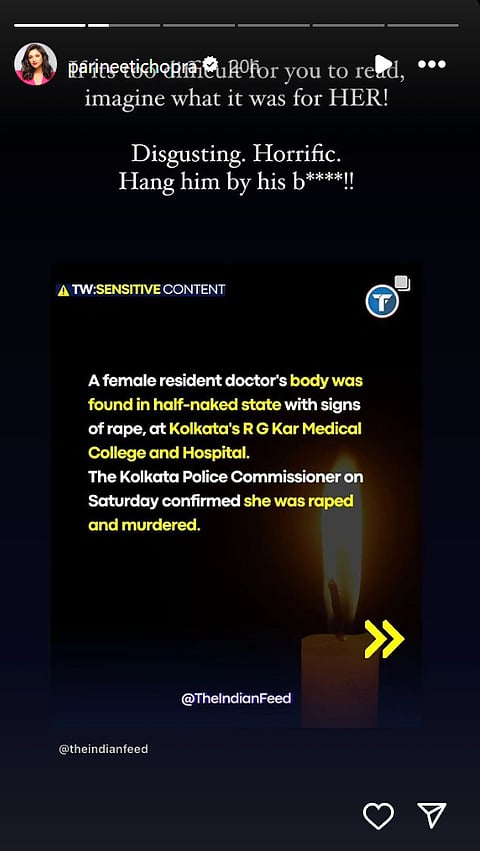 The recent rape and murder of a 31-year-old postgraduate trainee doctor at the RG Kar Medical College and Hospital in Kolkata has shaken the nation. The doctor was found raped and murdered in the hospital lecture hall on August 9. The details of the crime are shocking and distressing. Citizens have taken to the streets to protest and demand swift action. Amidst this, Bollywood celebrities have also taken to their social media to speak up about the incident.