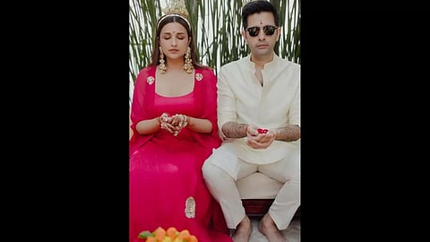 Parineeti Chopra and Raghav Chadha got married last month in Udaipur. The pre-wedding and wedding pics have gone viral on social media. Yesterday, Parineeti shared a bunch of fresh pictures from her haldi. In the pics, Parineeti and Raghav Chadha are seen sitting together for puja and were all smiles as they posed for the camera.