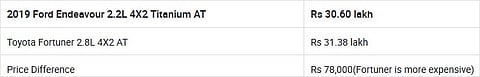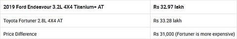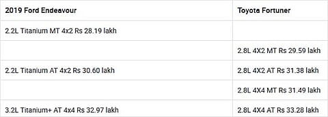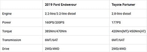 Ford has recently updated its flagship SUV, the Endeavour, for 2019. The SUV now gets a slightly reworked exterior and a few additional features. And today, we pit it against the segment sales leader, the Fortuner, to find out which of the two SUVs offers a better value for money in terms of features on offer at a comparable price.