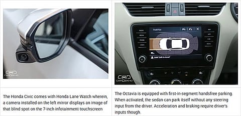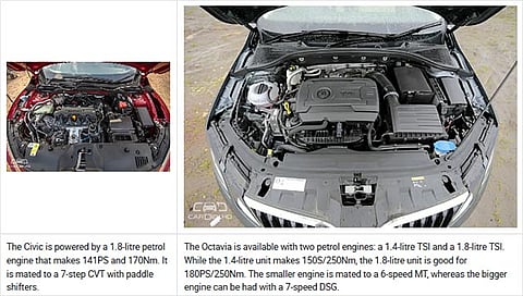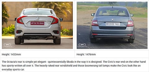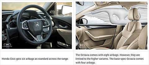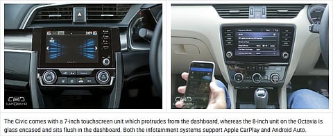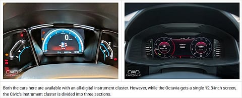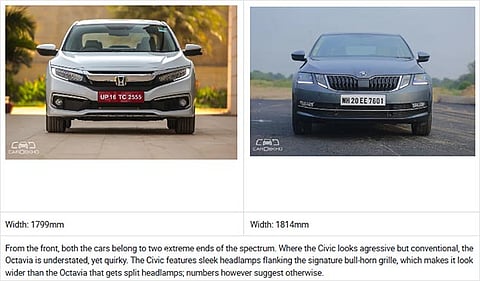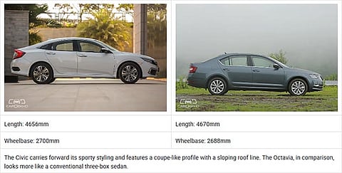 Set to be launched on 7 March 2019, the new tenth-gen (facelift) Civic is making a comeback six years after the eighth-gen model was discontinued in 2013. In those six years, the competition in the segment has grown fiercer with the introduction of latest models of the Skoda Octavia, Hyundai Elantra and the Toyota Corolla Altis. In fact, the Skoda Octavia has evolved significantly and makes a really strong case for itself. Here's a detailed comparison of the two midsize sedans in pictures to see how the two fare against each other, be it in terms of looks, features or engine options.