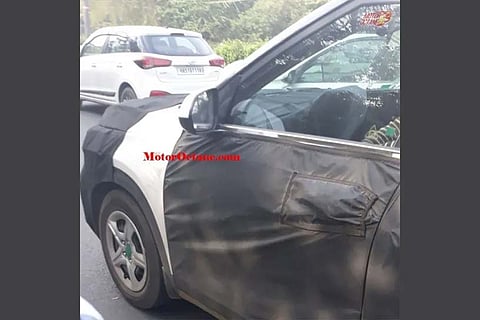 The Kia SP Concept-based compact SUV has been spied testing once again. However, this time it seems to be the base variant of the upcoming SUV. We say so as the test mule was equipped with halogen headlamps, steel wheels with covers and manually adjustable ORVMs.
