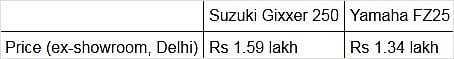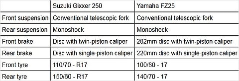 Suzuki has decided to take the fight to the Yamaha FZ25 with the launch of its Gixxer 250 at Rs 1.59 lakh (ex-showroom Delhi). The Yamaha is the more affordable option of the two by nearly Rs 25,000 but the Suzuki packs the meaner punch. Hence, is it justified to spend the extra money to get the Gixxer?