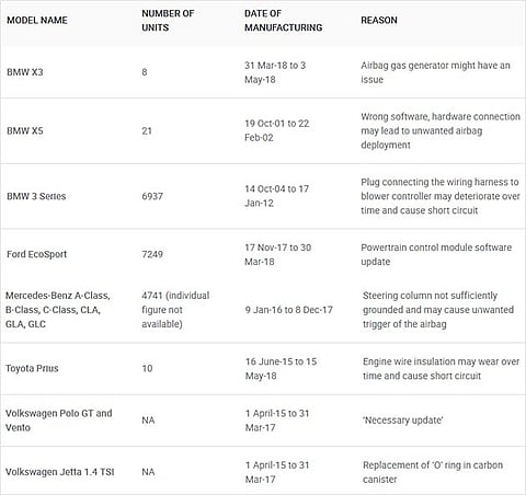 We earlier came out with a detailed report on all the cars recalled in India this year till July. Now, it's time to report on all the vehicles that have been called in by their manufacturers for either updates, inspections or fixing a defect in the month of August and September.