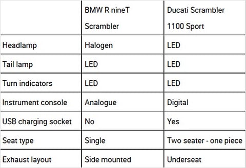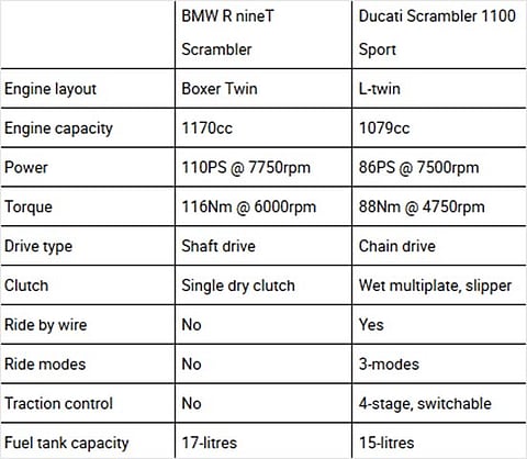 The Indian Scrambler segment consisting of the Ducati Scrambler Icon and the Triumph Street Scrambler. The Scrambler concept has mostly revolved around lightweight bikes that offered sedate performance and concentrated on light off-road fun. For more serious performance, you have just the BMW R nineT Scrambler to go to. With the Introduction of the Ducati Scrambler 1100, BMW Motorrad has something to worry about. Let's find out which one is better on paper.