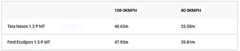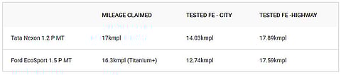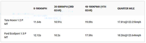 The Ford EcoSport is available with 2 petrol engine options: a 1.5-litre Dragon series engine and a 1.0-litre EcoBoost. The 1.5-litre, 3-cylinder petrol engine produces a maximum of 123PS of power and 150Nm of torque, mated to a 5-speed manual gearbox. The Tata Nexon, on the other hand, is offered with a 1.2-litre, 3-cylinder turbo-petrol engine that is capable of 110PS of max power and 170Nm of peak torque, mated to a 6-speed manual transmission.