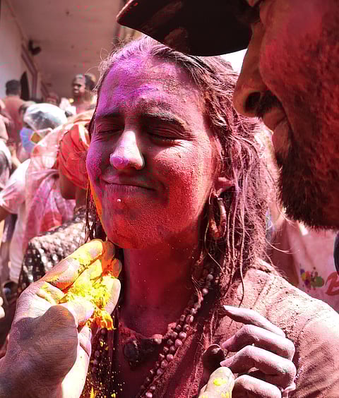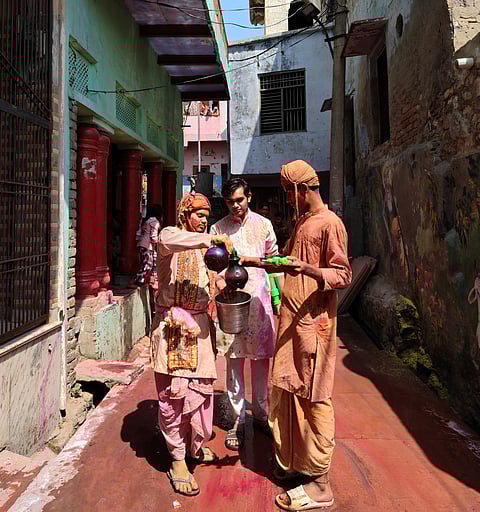 Holi celebrations in Nandgaon are vibrant and unique, steeped in rich cultural traditions. Historically, Holi in Nandgaon commemorates the playful interactions between Lord Krishna and the Gopis of Vrindavan. According to legends, Lord Krishna would visit Nandgaon and playfully tease the gopis by drenching them in colored water, leading to the tradition of Lathmar Holi, where women playfully beat men with sticks while men try to shield themselves.