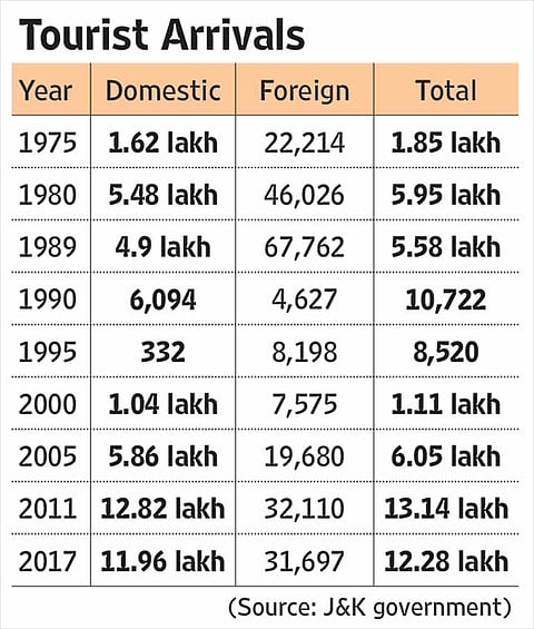 It is a pleasant April morning in Kashmir. The temperature swings between a comfortable 14 and 20 degrees Celsius and the towering Zabarwan range shimmers in the glassy waters of the Dal Lake. But Mohammad Shafi Sheikh, 52, who plies shikaras on the Dal, is distressed. “In the past few years, there were lots of tourists, but this year has been bad. No one is coming and we don’t earn anything. I don’t know what has happened this year,” he laments.