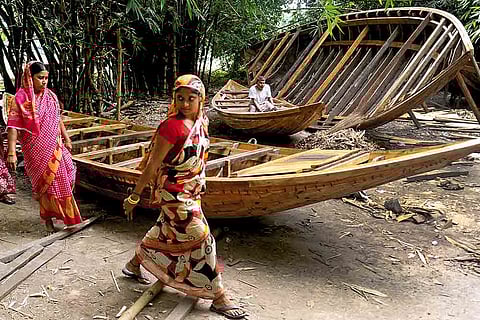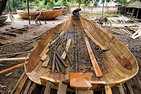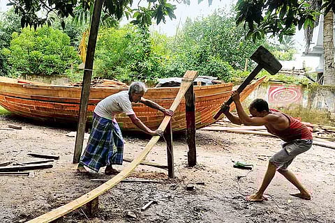 The staccato thump of the hammer breaks the springtime silence of a bamboo grove by a languid, humid Hooghly—in Balagarh, about 75 klicks from Calcutta. Streaks of sun pierce through the foliage and light up a row of boats. Some on stilts await the varnish; some are just wooden ribcages like the one 65-year-old craftsman Sheikh Ashraf Ali is hunched over. Ali’s craft is afloat and awash with history, but the centuries-old tradition of making wooden boats could soon die out as the demand for such vessels is disappearing rapidly. Balagarh’s Shreepur Bazaar, the boat-making hub of Bengal, is a timeless island amidst strong currents of change. “We are struck in a trade possibly at its last leg,” laments Ali, the mistry or the master boatwright.