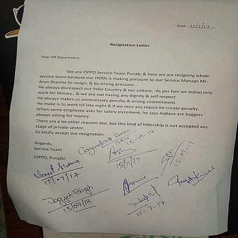 Chinese manufacture Oppo landed in hot water after employees in the company's service team in Punjab reportedly signed a letter to quit the company, following allegations of ill-treatment and disrespect to India and its culture by the Chinese company.