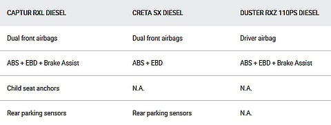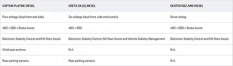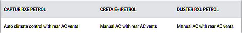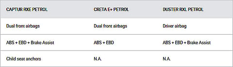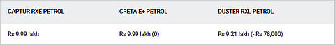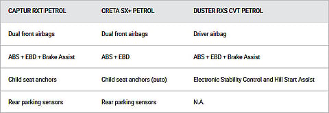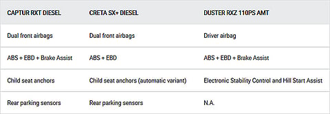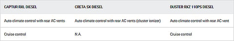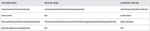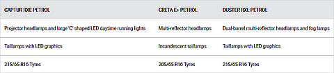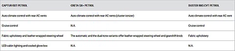 For the petrol, we’ve not picked the base variants of the Duster and the Creta and omitted the mid-variant of the Captur, the RXL, so that the selected variants are largely at par with each other, both in terms of pricing and equipment list.