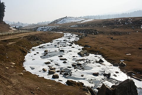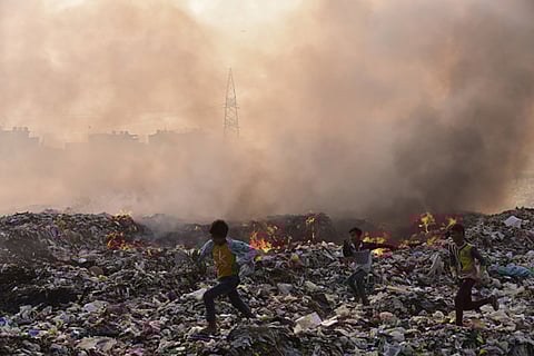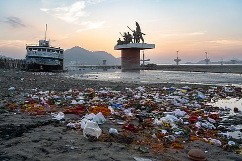 A view of a flood waterlogged street near Salimgarh Fort, the back side of Red Fort in the morning in New Delhi. In 2023, the water level of the Yamuna breached an all-time high mark in more than 45 years. Authorities had to evacuate thousands from nearby low-lying areas and divert traffic from arterial roads.