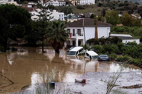 Cars are swept away by the water, after floods preceded by heavy rains caused the river to overflow its banks in the town of Alora, Malaga, Spain.