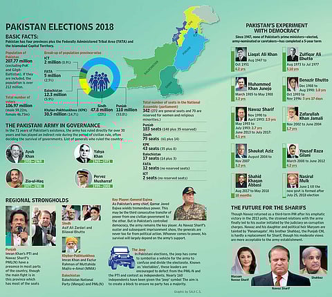 Imran Khan looks a bit like he used to at the top of his run-up, keen as a rapier and bustling with intent. He’s a man on a mission, addressing public meetings twice a day across electoral battlegrounds. Still extremely charismatic at 65, he’s the only real crowd-puller whose presence can make a difference to a candidate running under the banner of the Pakistan Tehreek-e-Insaaf (PTI). Pakistan, like India, labours under the slippery first-past-the-post system—a few floating votes can settle a game. And if anyone can swing the ball in dead air, it’s the Pathan.