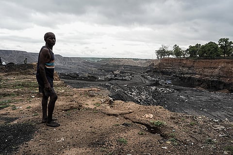 Lobin Logun stands at the edge of the open cast coal mine a few meters away from his house in Tapin Basti, Ramgarh, Jharkhand.
