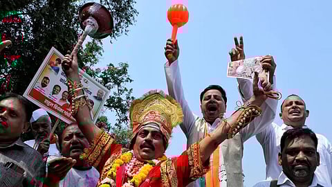 After the iconic evocation of Lord Rama and Shiva for several years, it was the turn of a symbolic battle over Bajrang Bali in Karnataka Assembly elections. As the results provided Congress with the much-awaited victory, the party workers in the Delhi office were found decked up in the costumes of Lord Hanuman. Adorn with the maces (gada) and dresses of Hanuman, the air was covered by the slogans of ‘Bajrang Bali ki jai’.