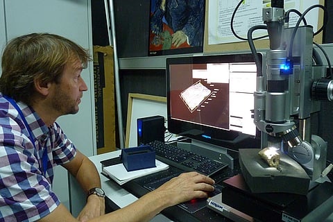 Evidence Bone fossils being tested in a Paris lab (Photograph by A. Dambricourt Malassé)