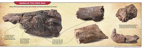 The haul is quite huge: the research group in Masol has found over 1,500 fossils and 250 tools so far from the 13 sites they have surveyed. Three of those bovid fossils (bovids are the largest variety of hoofed mammals, of the cow family) bearing prominent cut marks were sent to the Centre for Research and Restoration of Museums of France and the National Museum of Natural History in Paris on the recommendation of the Archaeological Survey of India. They were tested there and found to be authentic.