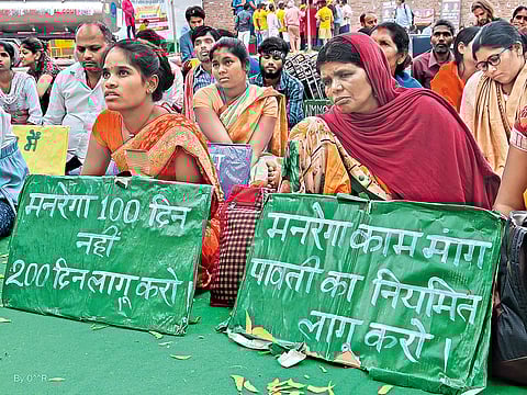 Three years ago, lakhs of panic-stricken and desperate migrant workers, compelled to leave their places of work, were fleeing towards their native places under acute distress. Many were undertaking the treacherous journey on foot. It is a cruel coincidence then, that at a time the nation is commemorating the third anniversary of the 2020 lockdown, workers from several states have gathered at the capital’s Jantar Mantar to protest the alleged dilution of the Mahatma Gandhi National Rural Employment Guarantee Scheme, popularly known through its abbreviation MNREGA, or simply, NREGA. The 100-day protest started on 23 February.