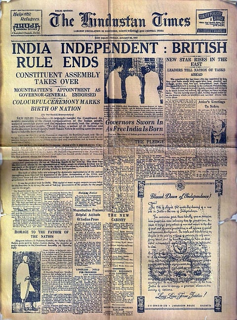 The two major Indian dailies-- Times of India and Hindustan Times--in its headline celebrated the idea of an independent India. TOI focussed more on the the jubiliant celebration across the country; elaborating on the comments by major leaders of a free nation. There were snippets on how the first Prime Miniser Jawaharlal Nehru constituted his cabinet, calling alongside for "big efforts from people" for the "incessant striving task of future."