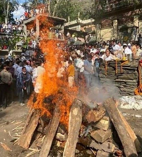An unprecedented ‘sea’ of people emerged at Rampur, the native town of former Chief Minister Virbhadra Singh, ‘Raja’ of Bushahr, to pay a tearful adieu to the towering political leader, whose mortal remains were consigned to the flames with full state honour on Saturday on the banks of Sutlej river, 120 km from Shimla.