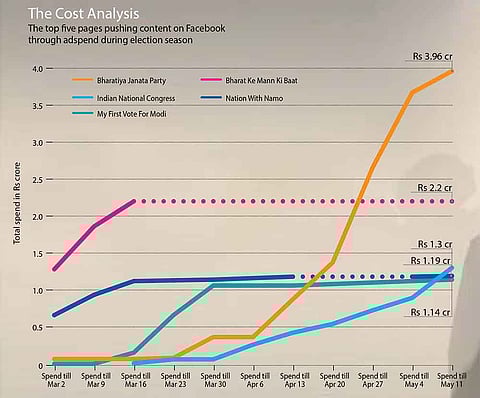 Social media has not reached a stage where it can swing Indian elections despite the fears of those consumed by it, but it has surely emerged as an aggressive space where political parties compete for outreach. And crucially, it is the only platform which offers a glimpse into how much money parties are spending during elections. Patterns of how much money was spent on social media during the elections gives a fair idea of the hopes and desperations of political parties in play. Is the saffron giant just flexing its muscles or swinging wildly just to land a punch. Is the underdog responding in the same coin?