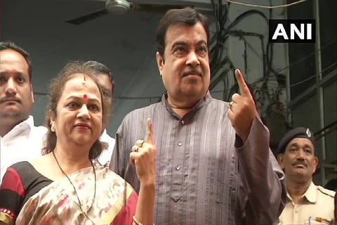 8:40 AM: Union Minister Nitin Gadkari and wife Kanchan, after casting their vote in Nagpur.