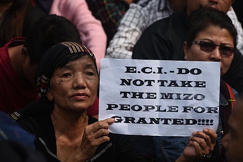 It’s hard to find visible signs of an impending election in Mizoram. A rare poster pops up on a moss-covered cliff-face around a corner. A chair stands at the entrance of an empty campaign office, set amid cheek-by-jowl shops. At the headquarters of the Mizo National Front (MNF), a young party worker watches highlights of a Premier League football match on his smartphone. Mizoram will vote on November 28 to elect a new government, but its picture-postcard hilltop capital Aizawl seems disinterested in the democratic process. This is a laidback city basking under the mellow November sun, watching the world go by. In front of a big graffiti of the state election department urging people to vote, young men and women sit on a row of parked motorbikes and discuss football, cinema and everything else but elections.