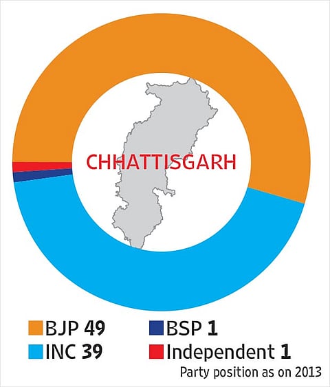 The BSP’s alliance with the CPI and the Chhattisgarh Janata Congress of former CM Ajit Jogi in Chhattisgarh has created the ground for the first three-way battle in the state’s history of assembly polls. Recent elections in the state have seen contests restricted largely to the BJP and the Congress.