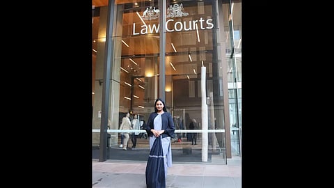 “It was a memorable day for me, being able to honour my roots and the hard work of my migrant parents, and to support the incredible work by Save the Loom,” wrote lawyer Amanda on her recent Instagram post. The accompanying photograph shows her standing before the Supreme Court of New South Wales in a grey sari with a black flare and white stripes under a black jacket. The next image in the post is a handwritten letter from Save the Loom (STL), a Kerala-based social impact agency whose sari Amanda was wearing. It is called the Usha sari from STL’s Vidhi (Sanskrit for law) range of 15 handloom saris for women lawyers. In the letter, STL said it views the saris as a medium to build “better workspaces and pay the right wages”. To the left side of the letter is a tiny label (that is stiched to the sari hem) and reveals the name of its weaver; in this case, Preethy R.K.