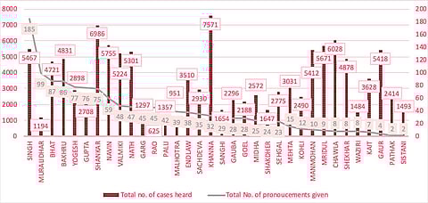 It was found that judges who heard a large number of cases did not always pronounce more judgments. This variance could be a result of judges simply not authoring judgments or their resistance to hear complex cases that require judgments to be pronounced. Alternatively, judges could be inclined to dispose cases through interim orders or the rosters themselves could be poorly and unequally organised. Finally, given limited data available, the methodology might leave some judgments, such as daily orders, from being included in the data-set.