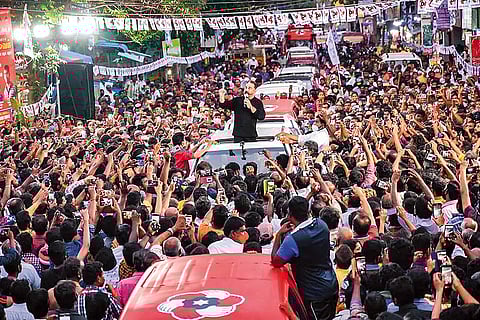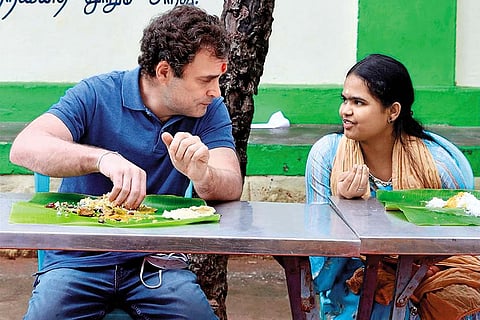It is a fact commonly acknowledged that cutthroat, pre-poll dealings are garnished, for the public and their mediators, the media, with sumptuous photo-ops rich in symbolism. Thus, Congress leader and MP Rahul Gandhi found a way into the hearts of Tamils—through their palates. During his recent tour of the state, the Congress leader joined members of the popular Village Cooking YouTube Channel to help prepare onion raitha to accompany the mushroom biriyani the members had prepared for him. Earlier, during his three-day road show in four western districts of the state, Rahul hopped into roadside tea stalls to sip chai and munch on butter biscuits with locals and party workers, lunch (on banana leaves) with women workers of a spinning mill and take selfies with all.