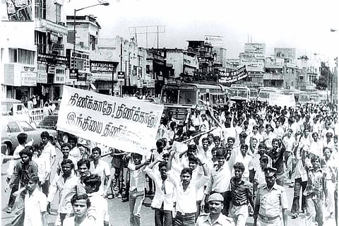 There’s a founding paradox at the heart of the Dravidian movement, in its very name. Like the word ‘Hindi’ is Persian in origin, the word ‘Dravidian’ is actually Sanskrit. For a concept that’s taken to mean a lot of things—but at its core a strong sense of linguistic separateness—this marks out a canvas bristling with ironies. Yes, there is a Dravidian family of languages, but a whole movement was carried out in its name that never much referred to the rest of them, except by holding up Tamil as a sort of master code—the fount of everything else. Yes, it did impact the social landscape and imagination profoundly: but at some level that was iffy too, marked by a capture of power by middle castes, with even hard-core Tamil-speaking Dalits on its periphery. Did all the passion get used for a mere transfer of power? Does it live on as a powerful idea with potential? Or, a century on, has a liberation ideology been flattened to shallow, two-dimensional pop-kitsch cutouts?