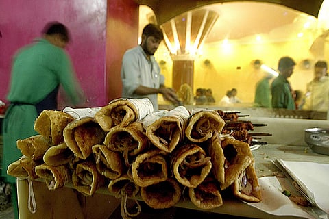 The kathi roll originated in central Calcutta, but for the last 40 years, Campari, in the south, has mastered the art of wrapping succulent, perfectly done, smokily tasty chunks of meat into dry, yet softly yielding parathas. They operate efficiently out of a mid-sized garage space, with a spacious standing area set with tables. Seeing your order—fat, somewhat squat rolls, ‘chops’ and chicken/mutton cutlets—slipped into crisp brown envelopes and stapled shut is particularly satisfying. We know about galautis; ever heard of melt-in-the-mouth kathi rolls? Campari’s fish tandoori roll may yet change your views on food.