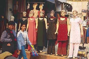 One sign of the changing times is Fazal and Sons, a popular shop for saris on Commercial Street, Bangalore. But in the last few years, the shelf space for saris has shrunk to less than half a floor, the rest of the three-storeyed shop selling only salwar sets. In fact, Bangalore's jeans-clad generation, like their peers in Hyderabad and Chennai, are reinventing the concept of formal wear. "Young women like only western clothes. They wear salwar kameez for formal occasions like weddings," explains Dr Asha. "It gives them a chance to go ethnic." Since they can wear a bindi, flowers in the hair, bangles and mehndi with salwar kameez, they are saved the pain of wearing a sari even for formal occasions, she explains. Agrees Tyebji, "The post-independence woman, although she was willing to experiment with regional variations of dress, didn't want to give up her Indianness but the generation after her aspires to a different Westward-looking image."