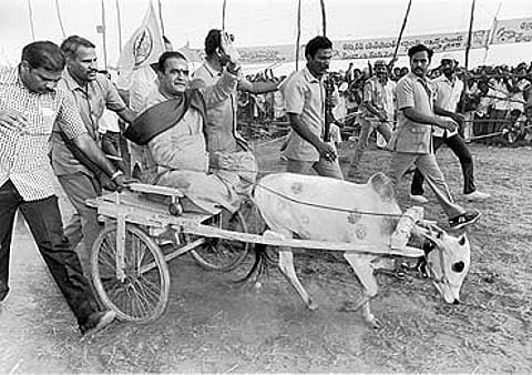On screen he seduced the Telugu world as Rama and Krishna and was soon regarded as a deity himself. Then he harnessed his star power to whip up Telugu pride and create a powerful political machine that would make regional aspirations and interests a decisive force in national politics.