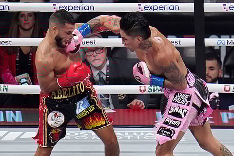 Abel Ramos, left, fights Mario Barrios during a WBC welterweight title bout in Arlington, Texas.