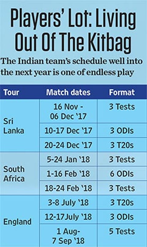 They are the bunch who keep running in—week in, week out—when the command comes to ‘play’. No rules govern the drawing of the schedule for the overworked Indian cricketers; nobody in the BCCI seems to be bothered about the crucial factor of fatigue. It has been thus for years. The question regarding players’ workload and the punishing schedule are either cleanly avoided or answered evasively, sometimes resulting in unintended humour. In the mid-1990s, when a BCCI secretary was asked about the reason for delay in announcing the itinerary of a particular tour, he said in all seriousness that the Board was trying to ascertain whether the next February had 28 or 29 days!