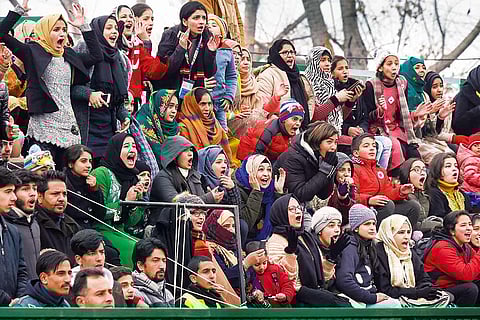 The snow-laden mountains in the distant background appear in a haze. Up close, all around the TRC Turf Ground, the leaves of the chinar trees are drooping with the weight of frost. It’s 2° Celsius in Srinagar—damp, dark and brooding on a January morning in the picture-postcard capital of Kashmir. Ten kms away, the iconic Dal Lake, is frozen. Inside the stadium, there’s warmth as 10,000-plus people have packed into the stands for, perhaps, one their happiest moments in recent memory—the I-League match between Mohun Bagan and local heroes Real Kashmir.