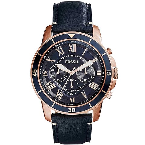 Best Stylish design: The Fossil Grant Sport Analog Blue Dial Men's Watch (FS5237) impresses with its rose-gold case, blue patterned dial, and versatile leather strap, perfect for adding a touch of sophistication to any outfit.