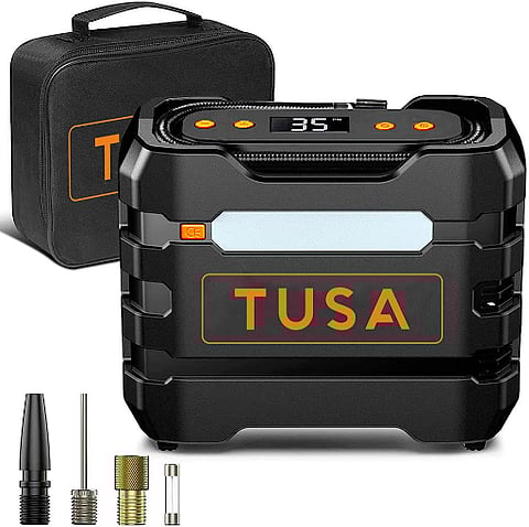 Best Portable: TUSA Digital Tyre Inflator for Car - 12V DC Portable Air Compressor Pump with LED Light earns the title of the best portable option with its compact design, extended reach, and smart auto shut off function, making it ideal for on-the-go use.