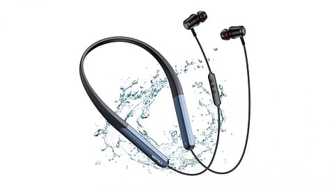 These neckband earphones have a 45 dB hybrid active noise cancellation and 3-mic AI call noise cancellation, providing the best active noise cancellation.