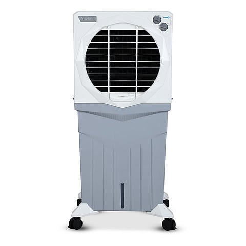Best Overall: Bajaj DMH 90 Neo 90L Desert Air Cooler is the best air cooler under 15000 offering superior cooling with a 90-litre water tank capacity, 5600 CMH airflow capacity, and hexacool technology, making it ideal for large rooms and hot climates.