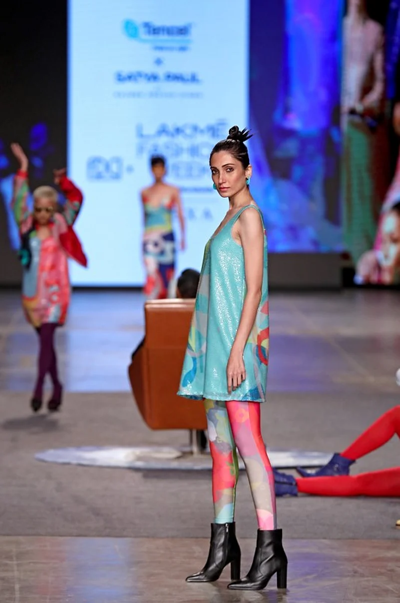 The Master’s Words” was the finale of Sustainable Fashion Day that paid tribute to the legacy of the late Satya Paul, and the entry of Carbon zero TENCEL™ branded fibres in India.This show was the finale of the Sustainable Fashion Day at the FDCI x Lakmé Fashion Week. The colourful and sustainable collection titled, “The Master’s Words” paid tribute to the late Satya Paul who passed away earlier this year and also launched the revolutionary Carbon zero TENCEL™ fibers.