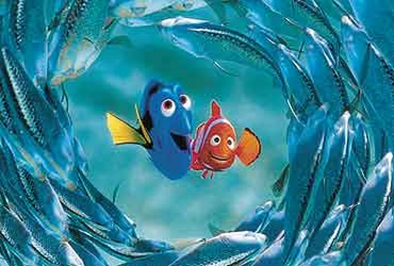 Like most good animation films, Finding Nemo's appeal transcends the age divide. Pixar Films' computer-generated sea creatures and the vast expanse of the ocean are straight out of any child's fantasy. The adventures of clownfish Nemo and his father Marlin hold them in enchantment and occasionally send their collective pulse racing, like when Marlin gets trapped in a school of stinging jellyfish. Marlin becomes a cautious father after losing his wife, Coral, and 399 of their 400 eggs to a shark attack. It's with a lot of trepidation that he takes Nemo to the school and the very first day itself the kid-fish is whisked away on a trip to "drop-off", the point where their reef opens into the deep ocean. Here Nemo defies the watchful father to swim up to a boat from where he gets scooped up to the aquarium of a dentist who eventually wants to gift Nemo to his nasty niece Darla (her meanness defined by the Psycho track in the background). Meanwhile, Marlin embarks on a mission to save Nemo and in the course of his journey from The Great Barrier Reef to Sydney, he meets several interesting creatures, including Dory, the fish who can read English but has a severe memory problem.