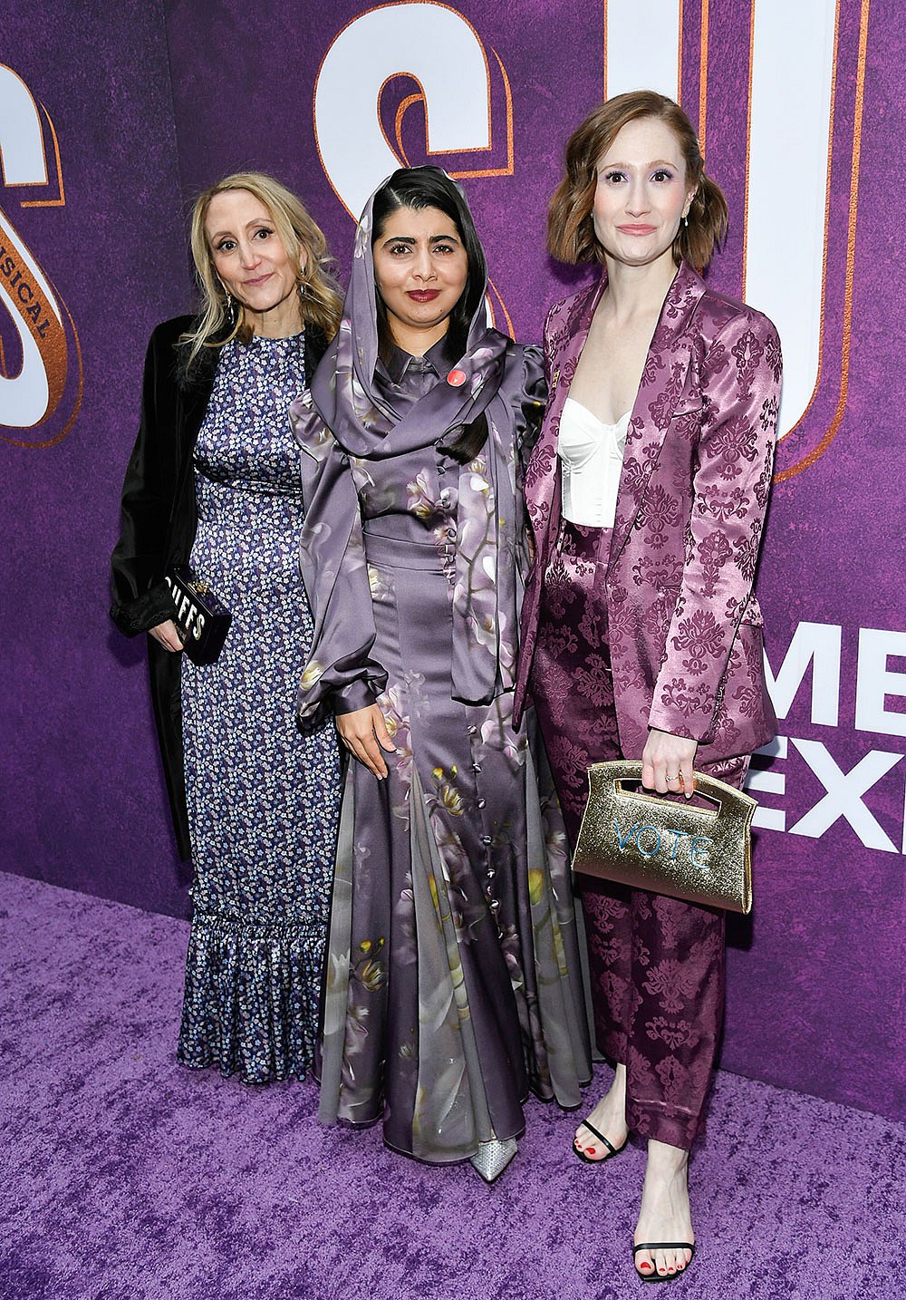 Producers Jill Furman, left, Malala Yousafzai and Rachel Sussman attend the ‘Suffs’ Broadway opening night performance at the Music Box Theatre in New York.
