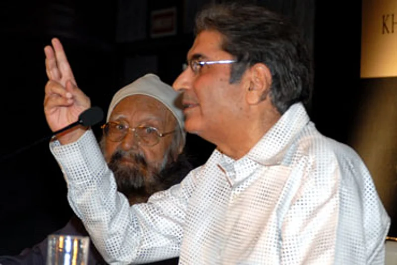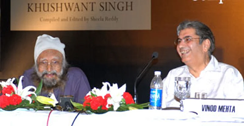Vinod Mehta: Debonair had a thing called 'centrefold'. I usedto consult Khushwant quite often on that matter. And so our friendship has grownsince 1974. It had a few hiccups. I wrote a book on Bombay called Bombay - APrivate View and Khushwant had a full chapter in that book. When I metKhushwant for an interview, I asked him, "What did you do in England whenyou were there for so many years? He replied: "Fucking, cheese andwine..." I have known him since then and it's been a pleasure.