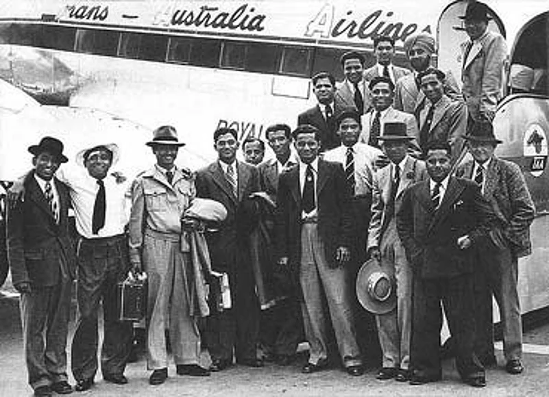 The Indian team arrives in Adelaide, Australia, 1947-48.