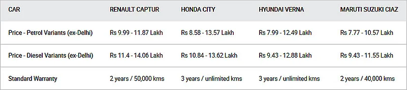 The Renault Captur is here and boy was it worth the wait! With those looks and the attractive introductory price-bracket, it doesn’t just put all the compact SUVs on red alert, but also the C-segment sedans, mainly - the Honda City, Hyundai Verna and the Maruti Suzuki Ciaz. Price-wise, the Captur does fall in the same space as the sedans. But has Renault tried to capture two segments with its Captur? Should you really consider the newest offering from the French carmaker over the more established sedans? Let’s look at it objectively, shall we?!