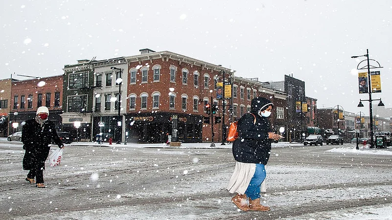 Heavy snow is spreading across a large swath of the Midwest, where travel conditions deteriorated.